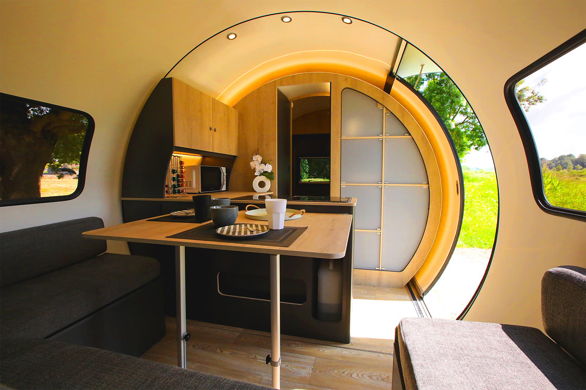 The Go-Pods fibreglass shell is very aerodynamic, greatly reducing wind resistance when towing and providing far greater fuel economy than traditional caravans.