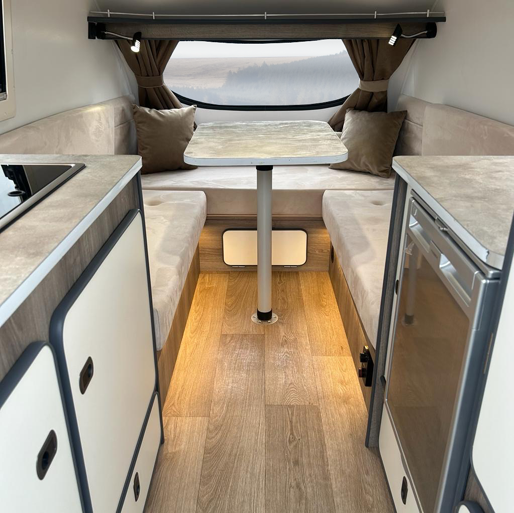 Premium furniture finishes, upgraded upholstery fabrics & a number of other aesthetic touches make the Go-Pod Pioneer stand out from all other micro tourers.